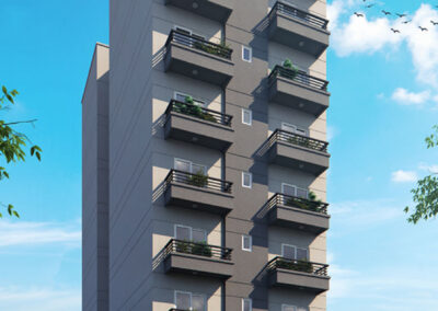 - Del 1° al 8° pisos cuatro departamentos. 2 al frente de dos ambientes, 2 al contra frente: mono ambientes.